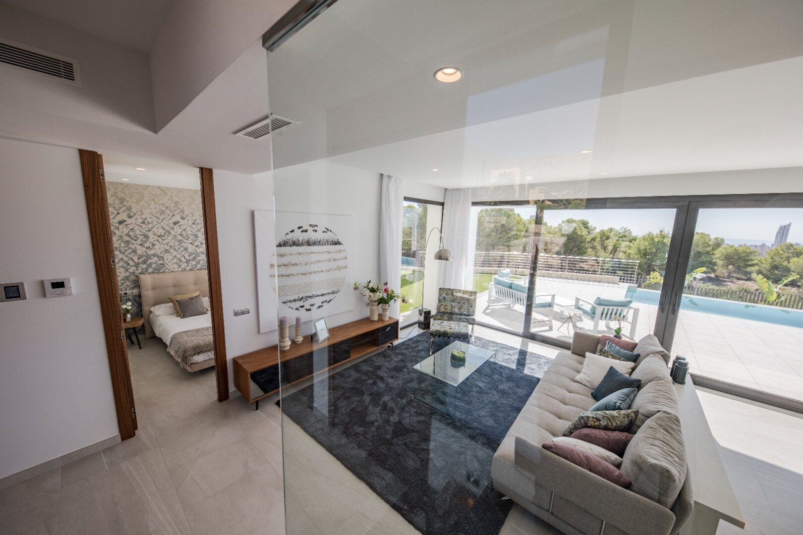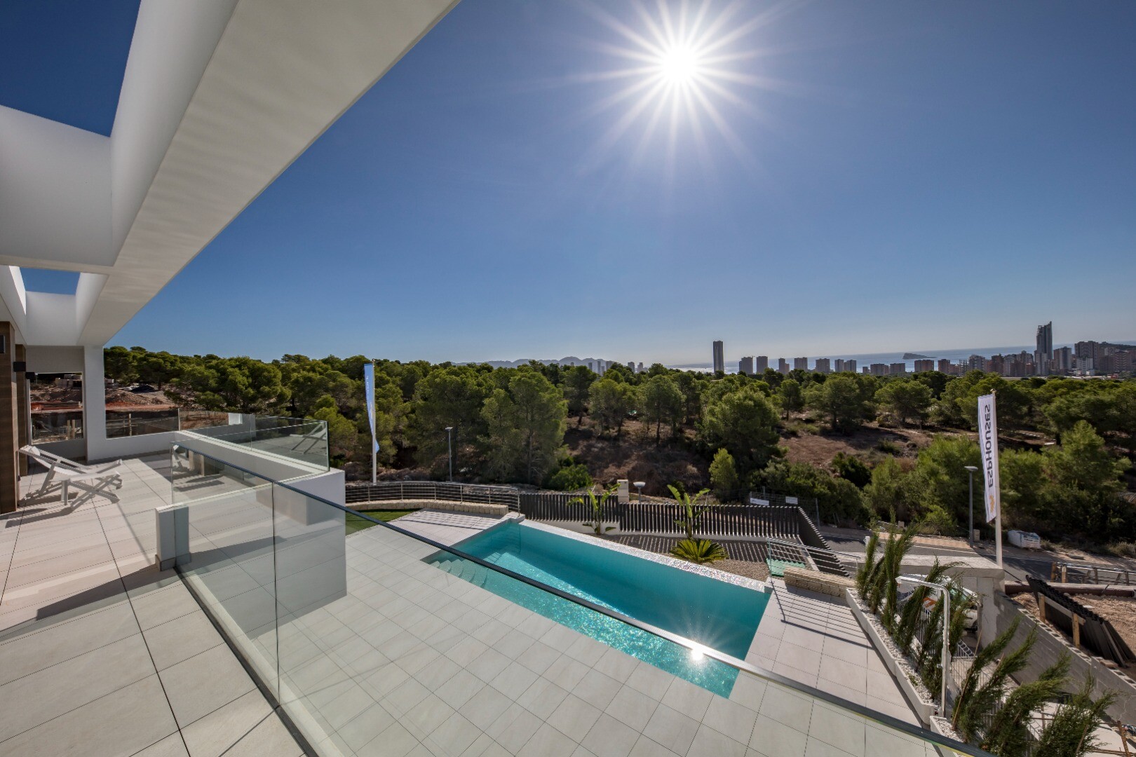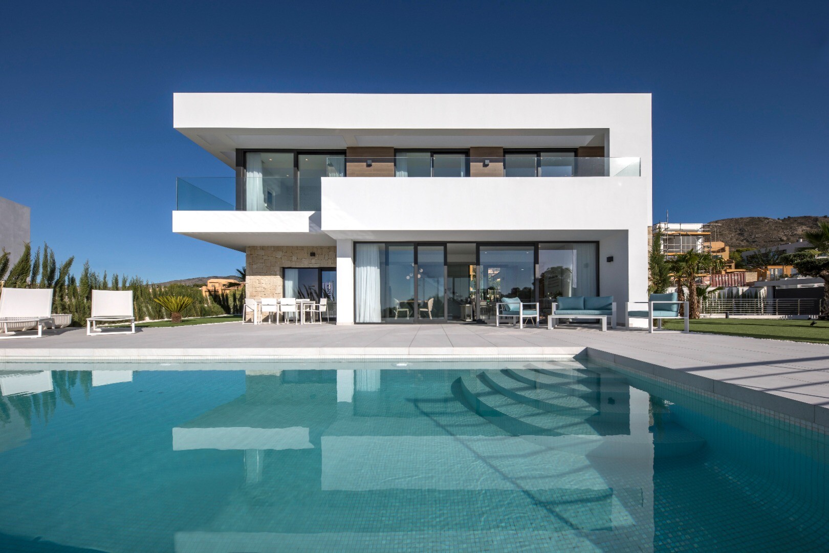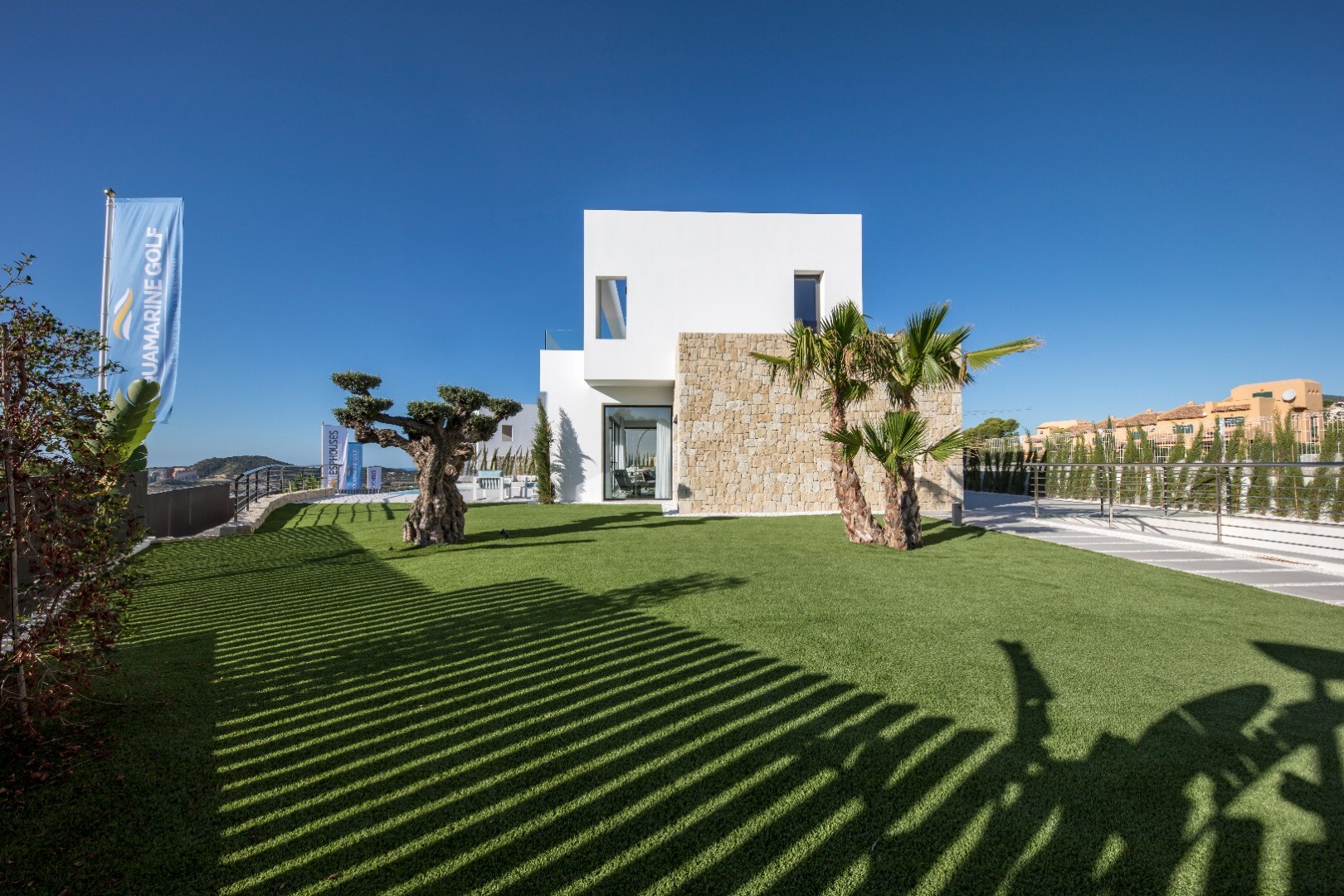 Aquamarine Golf - это уникальный жилой комплекс, расположенный в Сьерра-Кортина, Финестрат, состоящий из восьми эксклюзивных роскошных вилл с панорамным видом на юг, в сторону залива Бенидорм.
