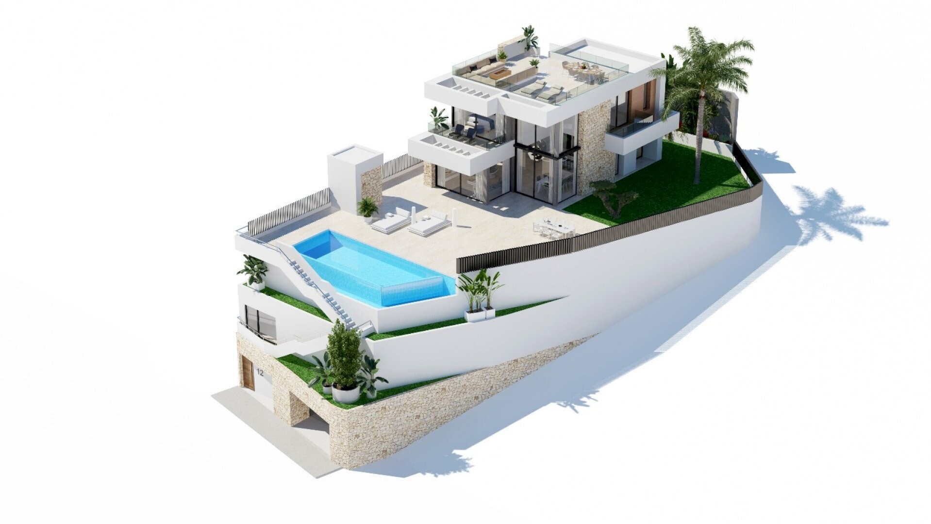 Он состоит из 12 независимых вилл четырех типов, все из которых имеют открытый сад с прекрасным ландшафтным дизайном и бассейном, окруженным искусственной травой и деревьями.